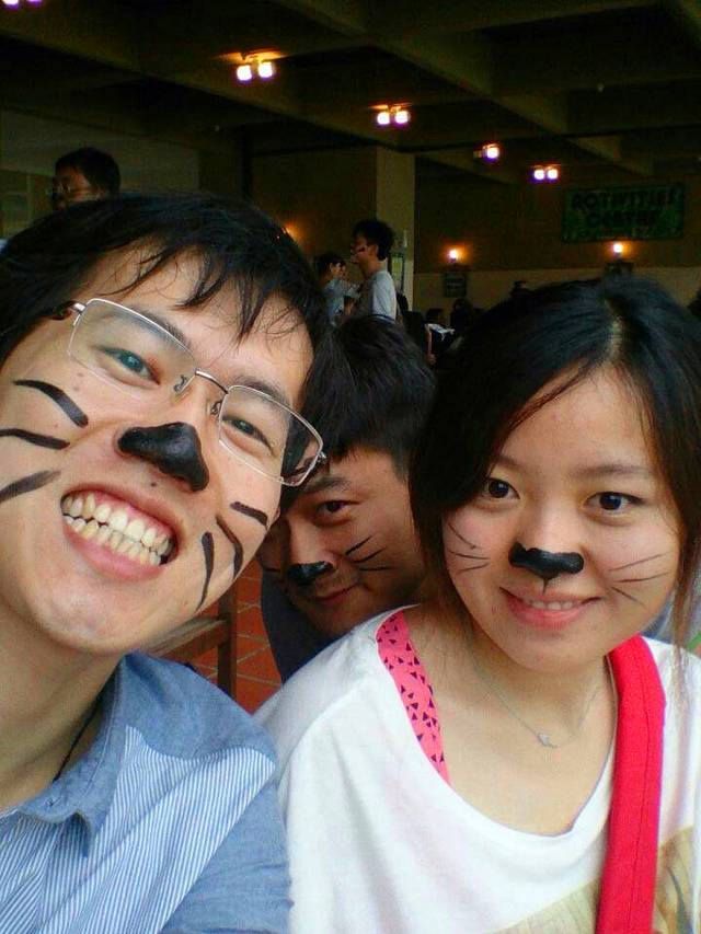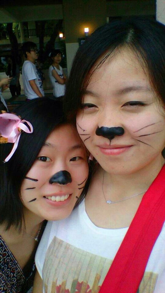 晚上和小伙伴们一起去参加一个猫主题的晚会,大家都画了猫鼻和猫须