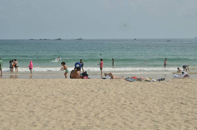 今天想轻松些,美女房东介绍我们就去小东海好了,又近,人也少;下午还帮我们租了条小艇玩。