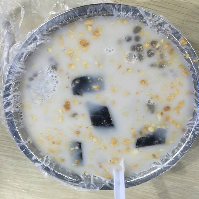 小东海。海面飘着的是海藻,里面还有水母,有工人每天打捞海藻。