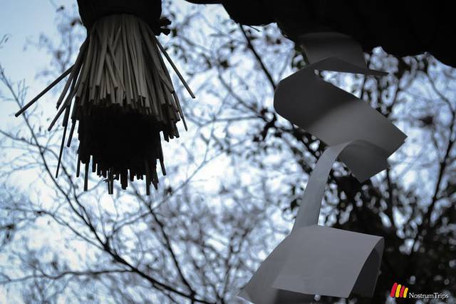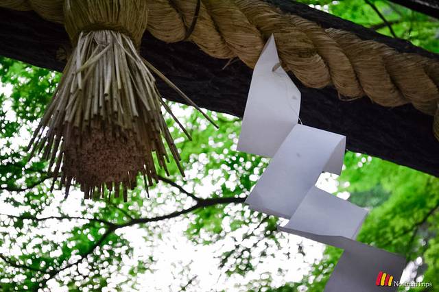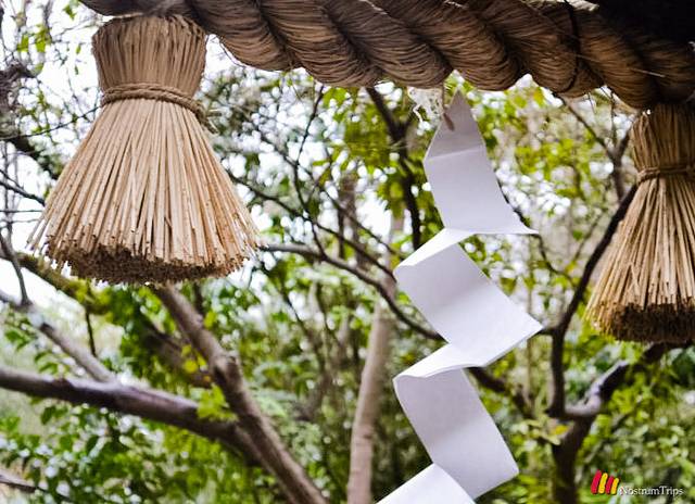 这个小小的神社最有特色的地方,就是这座黑木做的鸟居,是日本鸟居当中最古老的样式。对于我来说,比起红彤彤的鸟居,这个看起来更有日本风。下面的组图只是鸟居上挂的绳与垂纸。