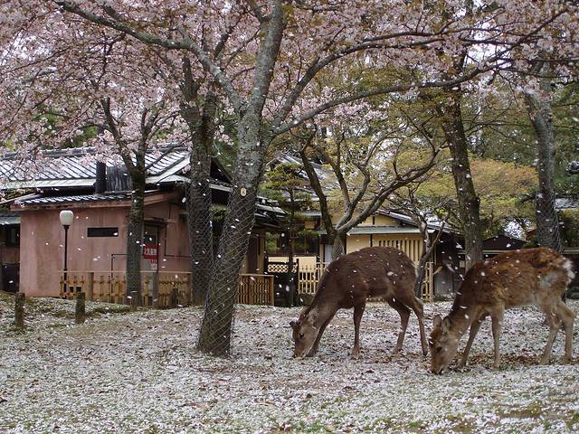 日本每年都会选出赏樱名所 100 选,名所 100 选中有两处位于奈良县。一处是奈良公园,一处是大和郡山市。一处可以观赏樱花和小鹿相得益彰的景色,一处可以观看樱花和历史遗迹。先来看看这两处的樱花盛况。感谢博主 http://smokelife2009.blog.fc2.com/blog-entry-217.html 提供奈良公园的照片。