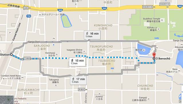 其他换乘路线,特别是在奈良市内的公交车换乘路线,请到日本后使用google地图搜索。主要的两个目的地车站,你可以直接复制粘贴分号内的车站名称:“奈良駅”或者“近鉄奈良駅”