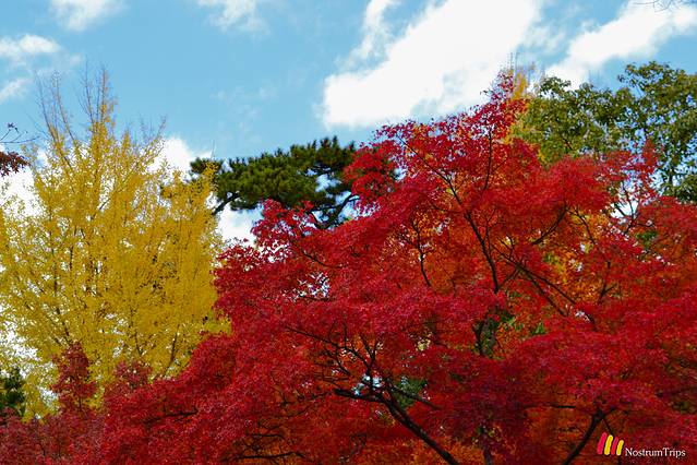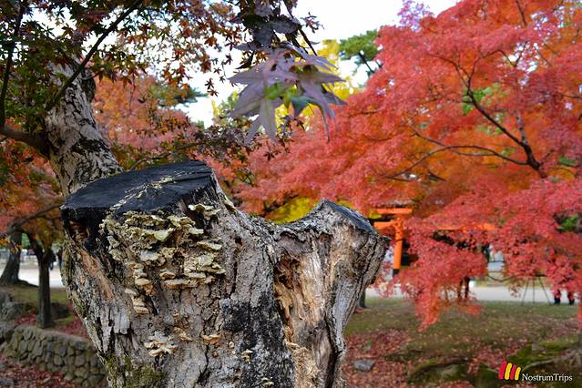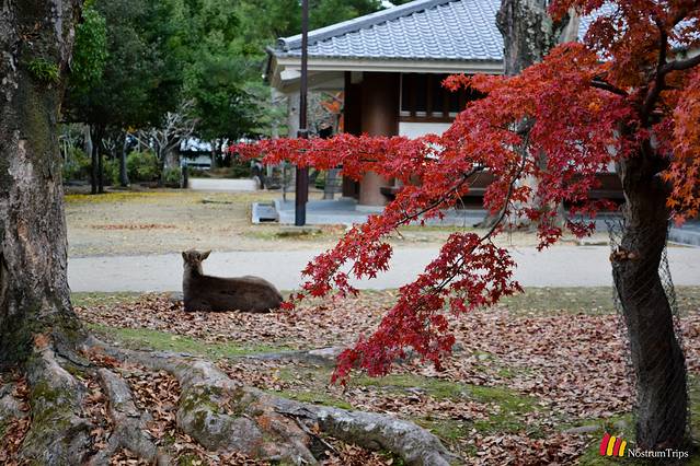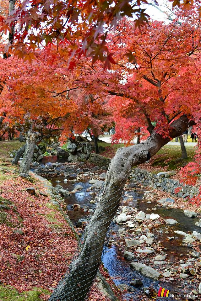 具体说一说奈良公园。奈良公园没有传统意义的围墙,从车站走走,就到了奈良公园的域内。然而很多人只是喂喂小鹿、看看东大寺就走了,但是在这片区域之内,还有很多其他的日本国宝,赏枫的地点,徒步的线路,以及原始森林。