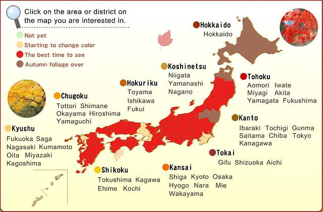 2015 年日本红叶最佳观赏时间预报图