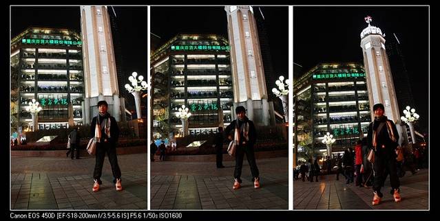 这是几张来之不易的作品。为了把碑和我都拍齐全完整,还要避开解放碑超高的人流交通。难为了雅丽,蹬着5寸高跟,托着2斤重的单反相机,左眯不行换右眯,终于拍出整的了。