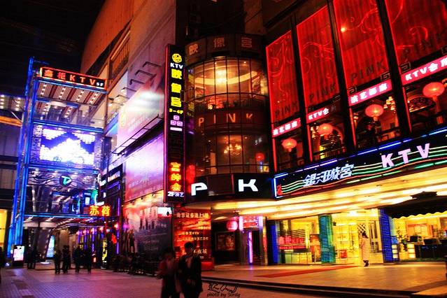 重庆最大的娱乐场所——得意世界(渝中区较场口,距离解放碑不过数百米)。苏荷、88,都还不错,不过总体比不上成都的酒吧个性和丰富。