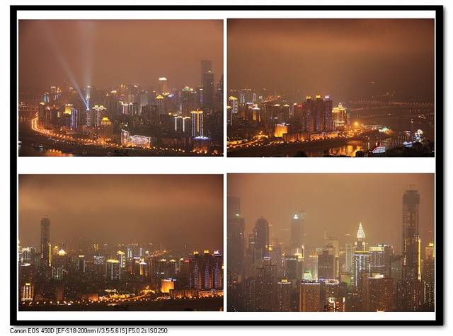 重庆的这片山脉跟首尔一样,都叫南山,而且都是观赏城市夜景的推荐地。“南山一棵树”就在半山腰处,吃完泉水鸡打个车过来正好晚上9点,是重庆绽放最美丽夜色的黄金时间。可是不知道是否3月26日(地球一小时)刚过的原因,还是因为朝天门和滨江路一带的老房子无法改造,整体感觉重庆的夜景不如想象中那么绚烂夺目,江边一线的楼房也没有亮灯,这天可是4月3号,明天就放假了哎,理应灯火辉煌才是。这时慎哥开始发难了:“这哪像香港啊,分明就是香港停电的夜景嘛!”我“……”。其实城市的夜景项目耗民伤财,而且也不符合低碳环保的乐活原则,想要留下完美的夜景印象?调高相机ISO值或增加1秒的曝光时间,动一动手指不就行了?