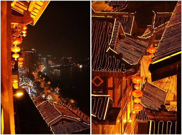 位于十一层的观景阳台绝对是重头戏。夜景是洪崖洞的一大特色,我们来到洪崖洞的这天恰逢3月26日,正在实施“地球一小时”活动。这是一小时灭灯后的照片。