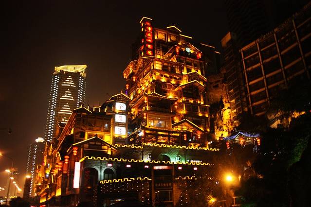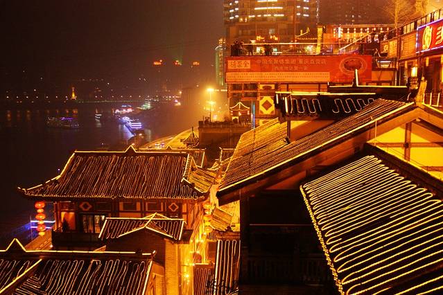 曾经依山而建的吊脚楼片区,经过拆迁改造,融入现代元素,变成一个重庆最具魅力的商业场所。洪崖洞,在许多老重庆攻略里都找不到的好去处。洪崖洞距离解放碑10分钟步行路程。