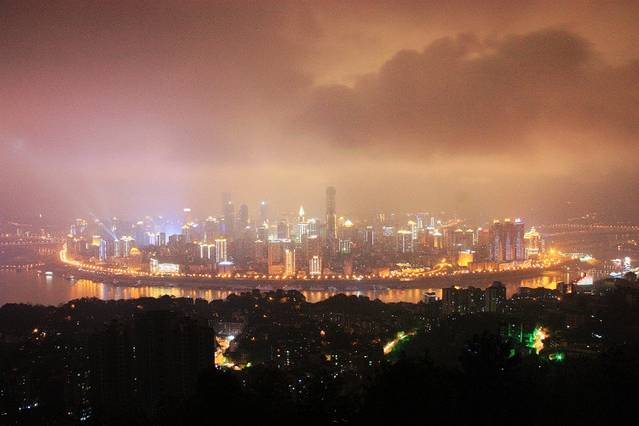 南山一棵树观景台上看到的重庆夜景。南山一棵树(南山山腰,门票20元,距离泉水鸡一条街打车起步价格)