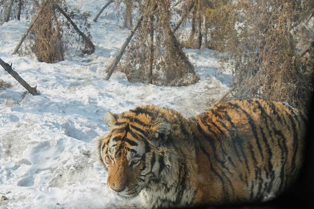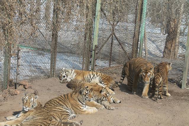 我以为会被拉到林区,想不到竟是圈养的老虎,一个个死气沉沉,歪七扭八地倒在一起,等着饲养员的车进来投喂,除了进食时迅猛的一扑外,看不出这跟家猫除了体型外,有任何区别。