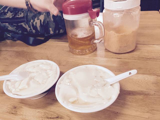 攻略上必吃的豆花,其实呢,就是偶们东北的豆腐脑,只是我们是早上吃的早饭,是咸的,在香港变成甜品啦,是甜的