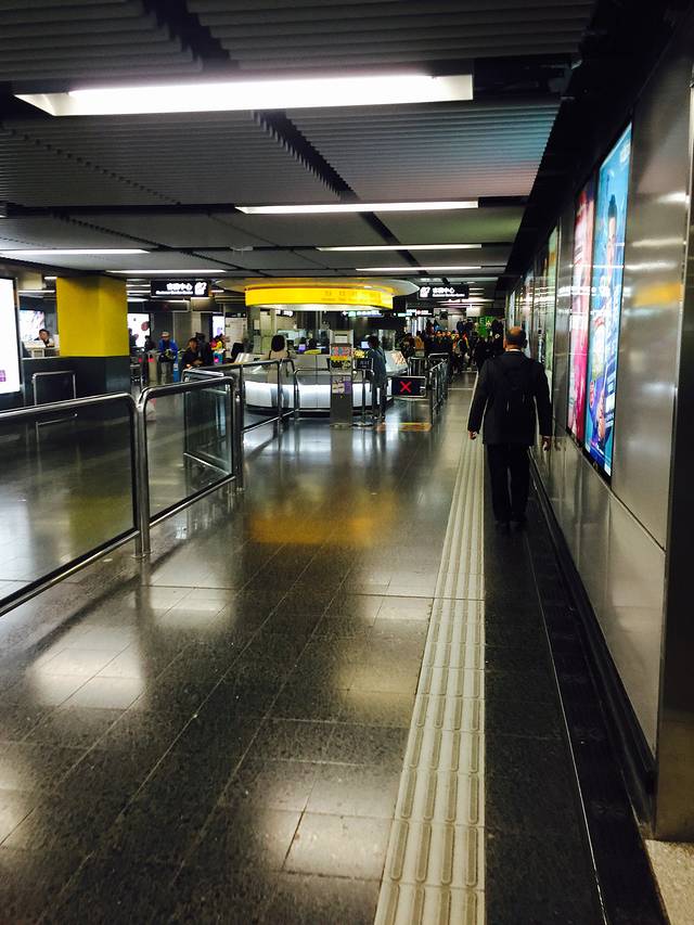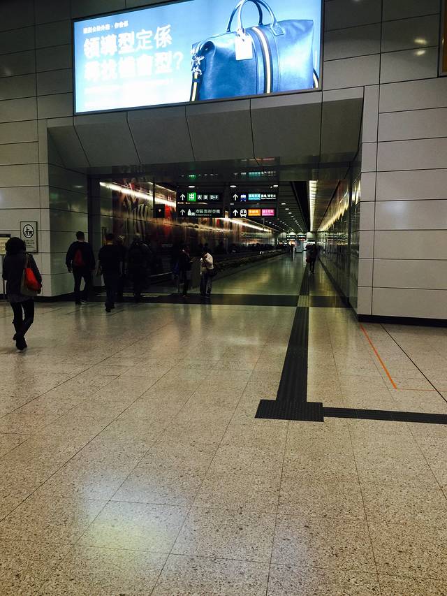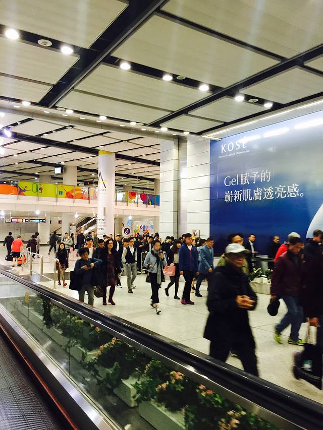 去东涌的地铁站内,行人都很有秩序,不会逆行