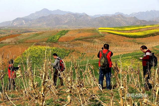 前几天,西安及周边天气普遍不好,直到上周末才晴了开来。听说蓝田玉山油菜花开了,于是和朋友相约去玉山镇看看。从井宇到穆家村、刘家山、山王村等,一路上我们行行摄摄,感受着玉山美丽而独特的田园风光。尤其是那一块块油菜花地,与红色的土地和绿色的麦苗相映衬,高低起伏间呈现出一幅幅耀眼的风景画,犹如巧夺天工的“调色板”。徜徉在油菜花海中,随风飘荡的花香沁人心脾。花丛中,只见一只只蜜蜂翩翩起舞,时不时地还与你来个“亲密接触”。