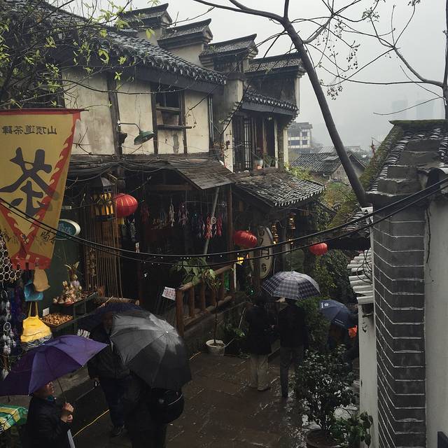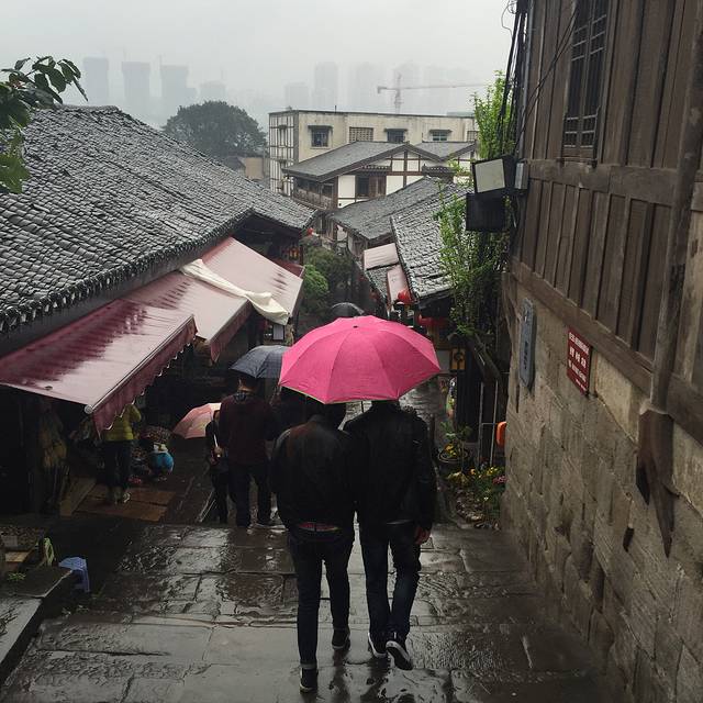下着雨,人也很多,窄窄的巷子两边全是小店铺,吃的用的玩的。买了2包辣椒干和一包花椒,蛮贵的!后来决定火锅底料还是去超市买吧!