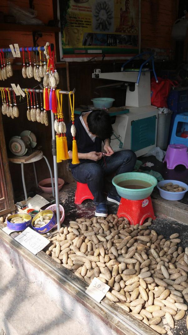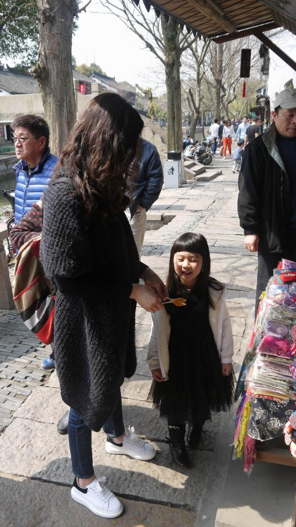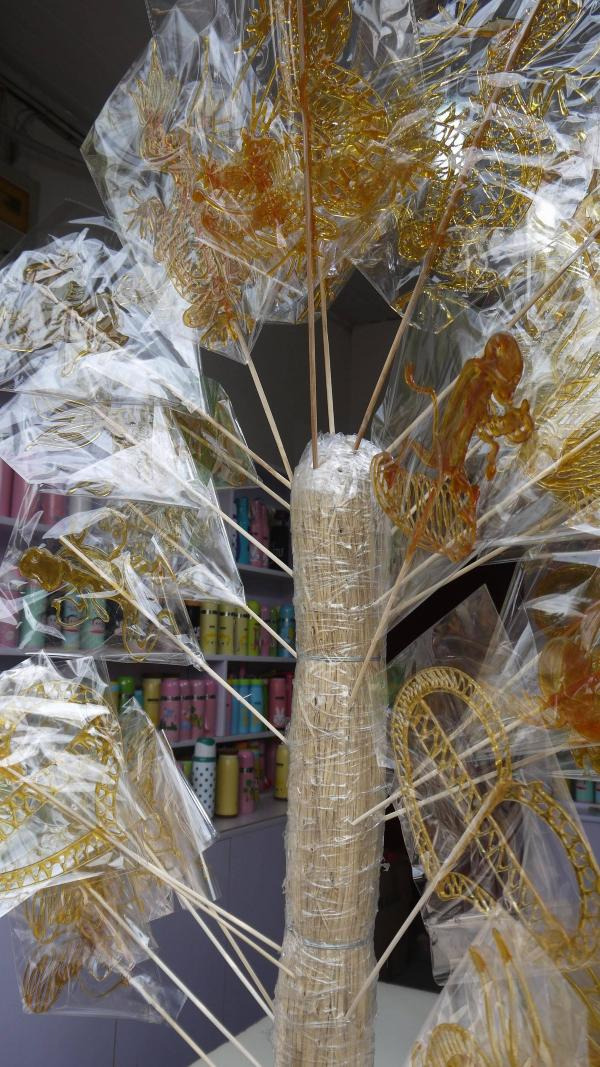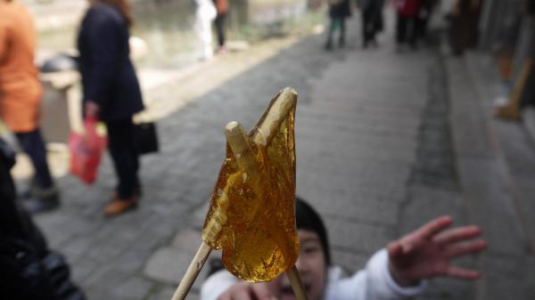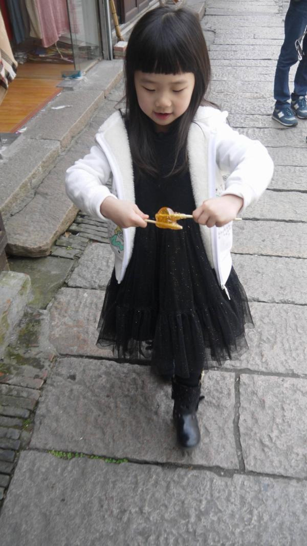 结账后出门右手边有麦芽糖小摊,可以和小时候一样,用两根小木棍搅拌一小坨麦芽糖玩,可以从晶莹剔透的琥珀色,搅成银白半透明的颜色。小朋友呆在城市从来没有玩过,觉得新奇,就买了给她玩。不过最后小朋友犀利地提出:貌似是大人们玩得更久更开心。