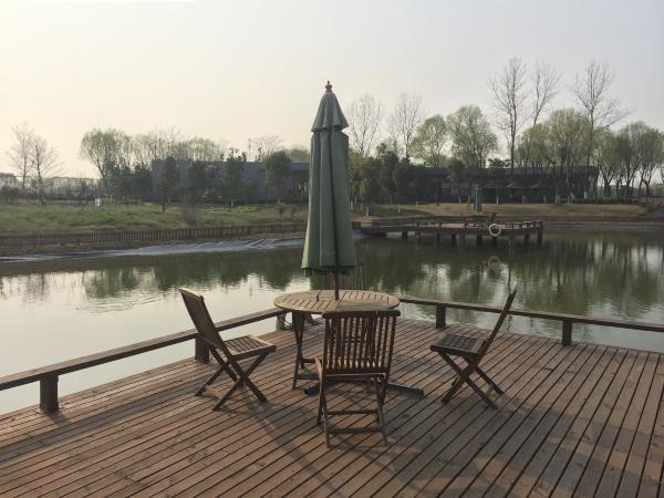 朱家角也有一些不错的酒店,不过这次住在了上海太阳岛度假酒店,开车过去八公里左右,岛上各种花也都开了,在英伦风格的小镇别墅之间错落,天气好的时候美美的。