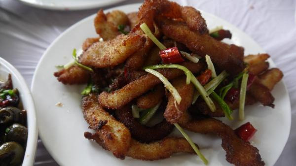 因为朱家角镇紧邻淀山湖,湖泊是上海境内唯一的淡水湖,所以可以尝到各种新鲜河鲜,在春天比较受欢迎的自然是螺蛳、黄蚬、河蚌、河虾等下酒小菜,鱼也有很多选择,鳗鲡和昂刺鱼是沿河各家河鲜店都能找到的。