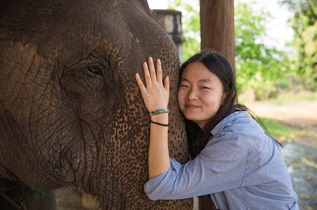 大象真是一种很缓慢的动物,手感很差,毛很硬很长扎的我俩腿疼。走前亲了亲它的大鼻子,谢谢你背我们在山里溜达啊,大象先生。
