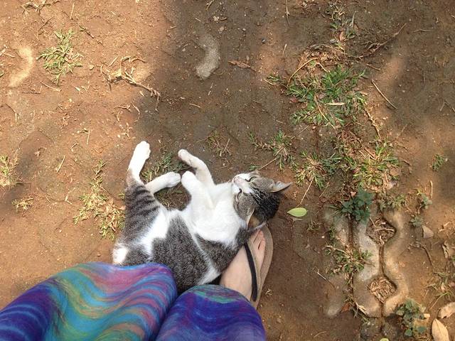 爱躺人脚上的古怪猫