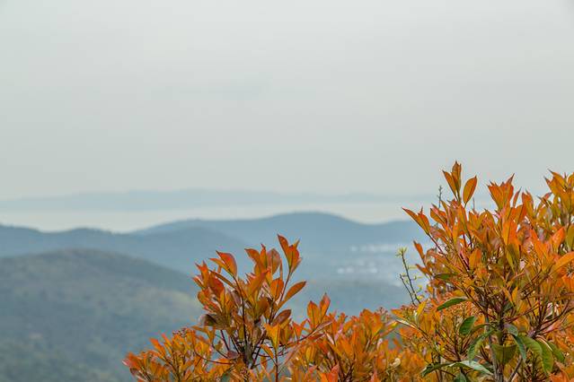 缥缈峰颠远眺太湖以及群峰,烟波浩渺,水质清纯。