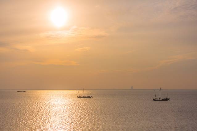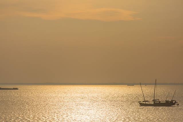 据说,七帆船只有太湖才有,与其它江河湖海的帆船都不一样,头尾二具小帆,中有三具大帆,外加二个风斗。每每扬帆而起,从水面看,耸天直起;就高瞻,似刀劈水。日出,一路金红,帆影只只悠悠扬;日落,满空彩霞,群航片片匆匆归。月挂,港湾宁静,桅杆根根林林立。