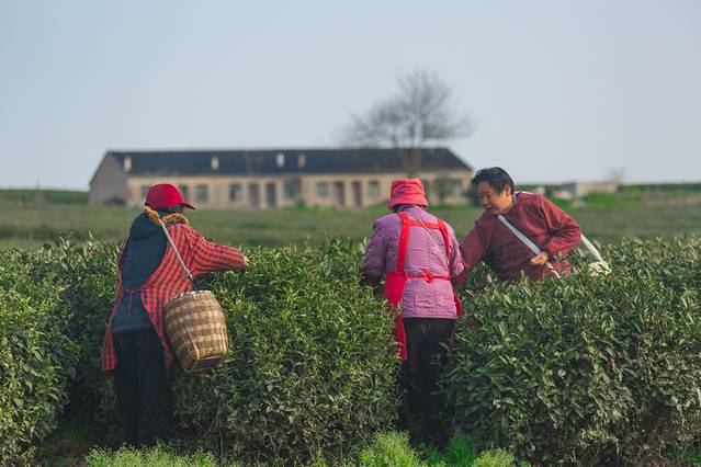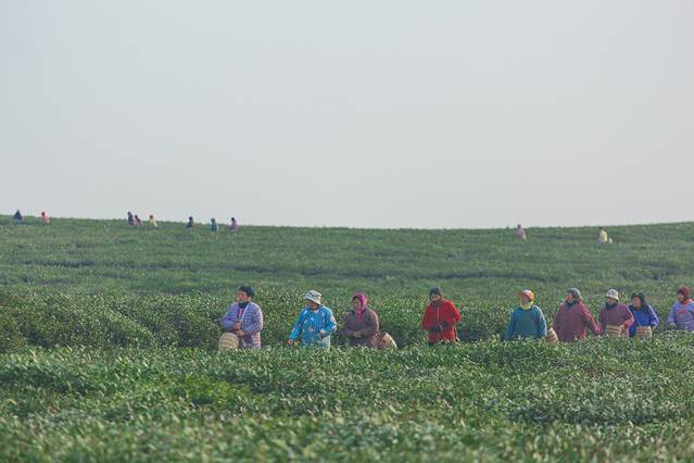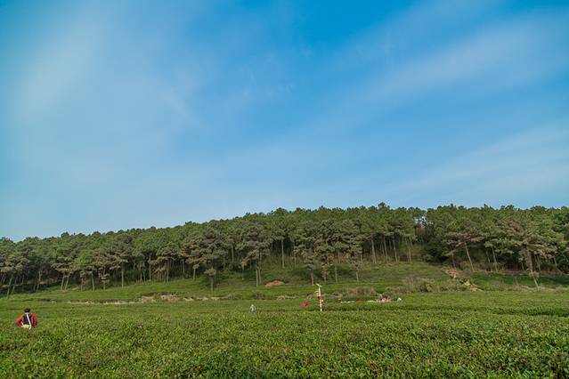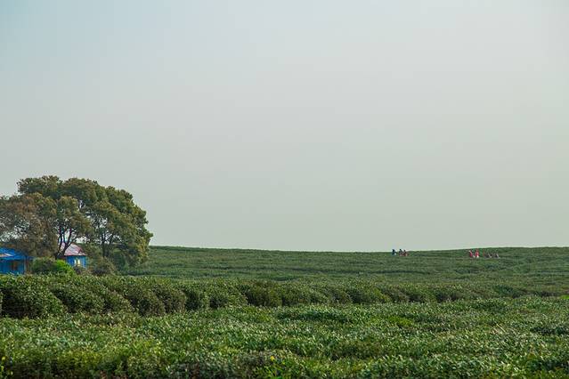 远处,采茶工人开始上工。