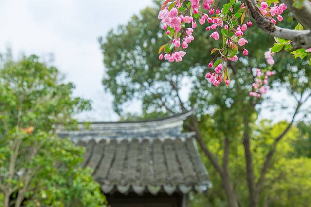 阳春三月,垂丝海棠花开,吸引无数游客慕名而来。