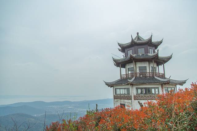 远眺碧波万顷的太湖尽收眼底,据说雨石峰顶可北瞻无锡,南望湖州,东眺姑苏,西见宜兴。