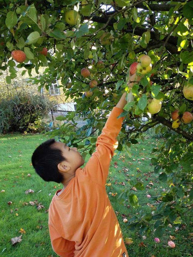 仔细观察,奥斯陆的市内公园,小花园,里面有很多苹果树,随便摘,不花钱,没人管。
