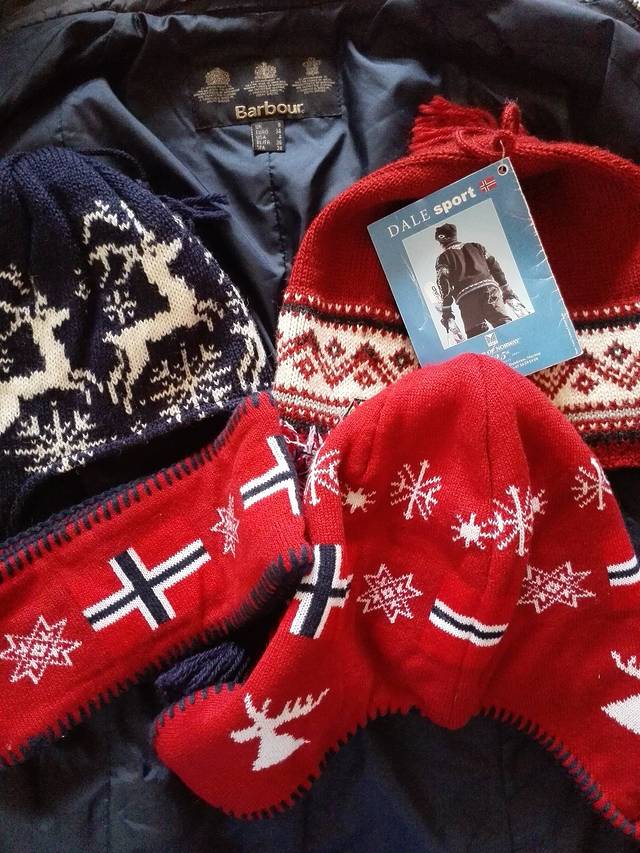 帽子,上面两顶,noway dale,很贵,但编织很精致,手感不一样,400多NOK,小贵。