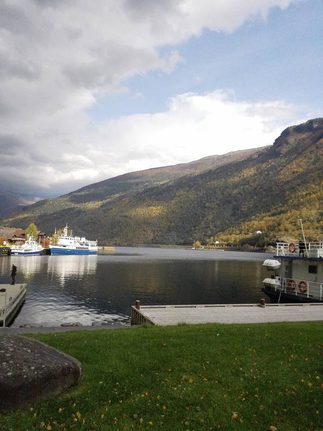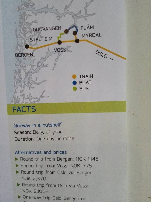 老公是个实在人,坚决否定了我要去那三块石头的念头。因为四体不勤的人,带着孩子的人,是不能在秋天,景区公交旅馆停业的情况下去的。于是,跟穷游诸君不同,我们坐火车、轮船、住酒店,进行了一家三口,弗洛姆小镇二日游。此段行程,是各大宝典、挪威旅游册推荐的经典松恩峡湾线路,全年通航,居家出游的朋友,可以来个周末二日游,就当精神土豪式农家乐了。