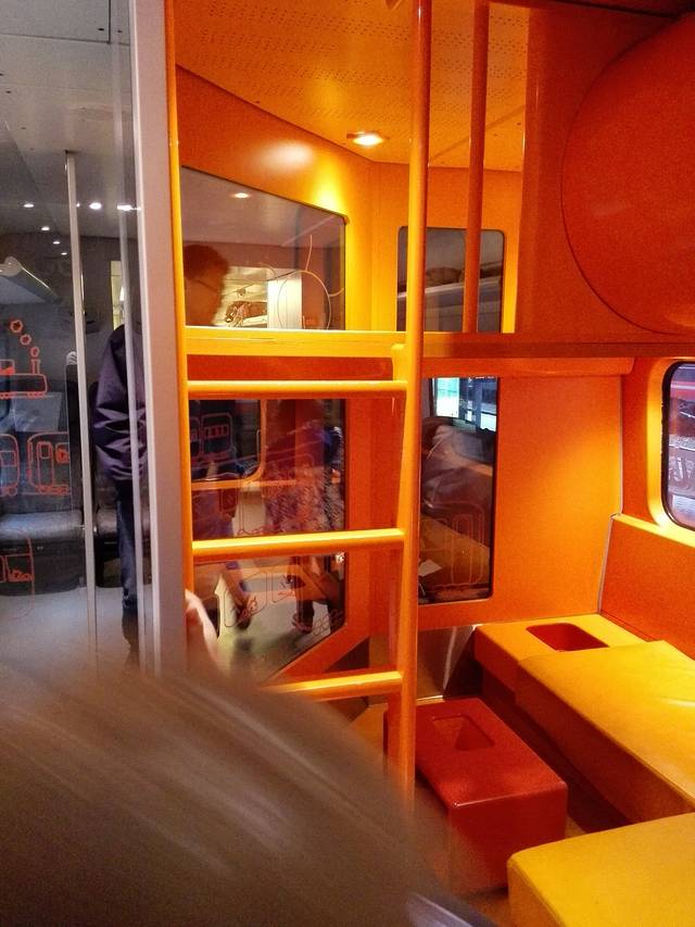 挪威的火车内饰相当大气。我们买的是家庭票,安排在家庭车厢,上来就是一节车厢布置成的儿童游乐区,有滑梯和小房子,适合6岁以下儿童。