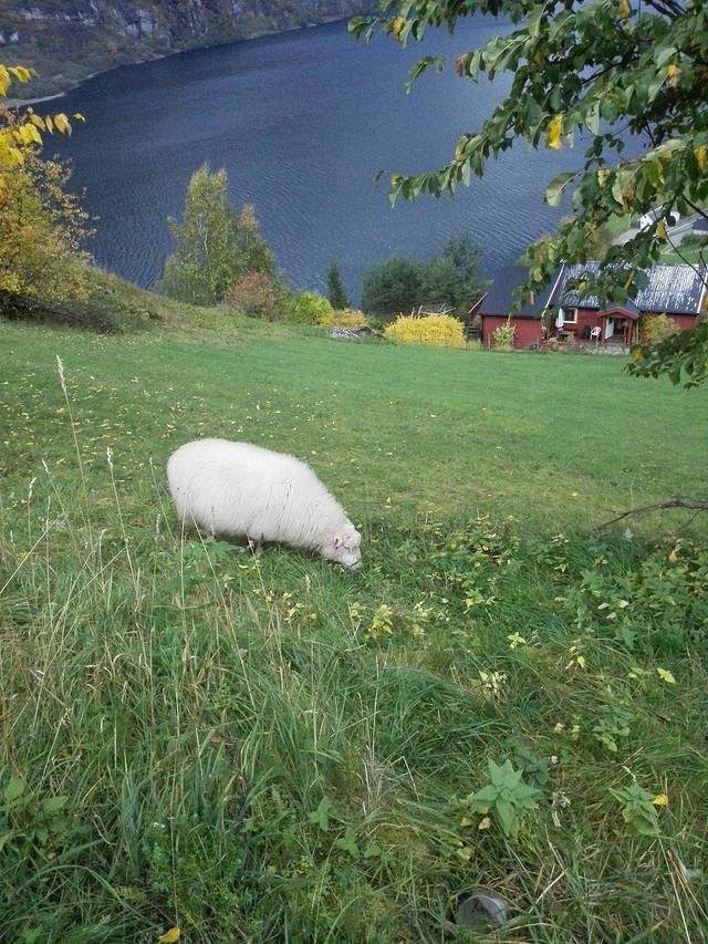 出发前,查了下弗洛姆的介绍,500人的小镇,脑补一下,没得说,小得不像话。订宾馆的时候,颇费心思。宾馆贵呀,都是1000多nok, 有公寓带厨房的,有星级宾馆。老公要求带厨房公寓,最好在3公里以外的,booking搜一下,果然啊,这种农家小院是最便宜的,不到1000nok.而小镇上的,码头附近的,都是1300以上的,这还是淡季价。