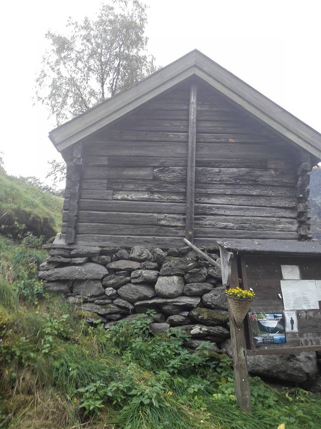 向上骑车,其实是推车600米,来到山上的景点,峡湾小木屋。当年的渔民和村民的旧居。