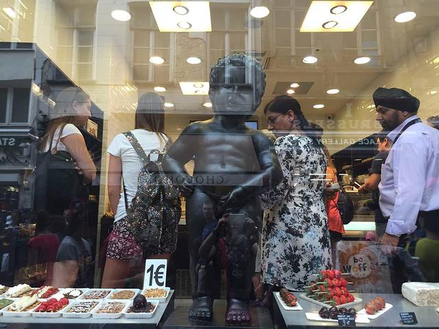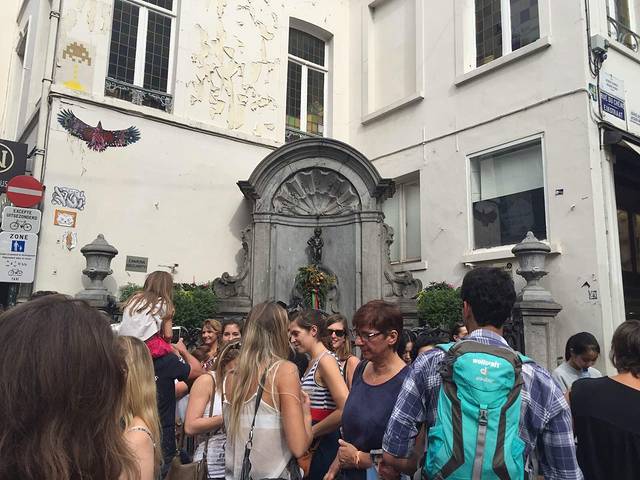 走着走着发现前面怎么一大群人,后来一看,原来是尿童像到了。我们看了都哈哈大笑,这真是个袖珍小尿童,这个尿童广场简直袖珍到绝了!