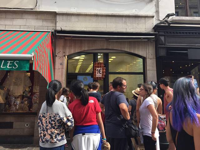 孩子们说布鲁塞尔的华夫饼是很好吃的,发现有很多人在排队,好,自己排队买去吧。