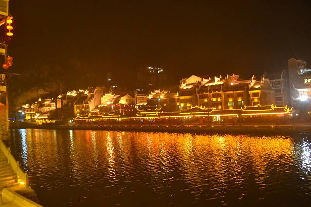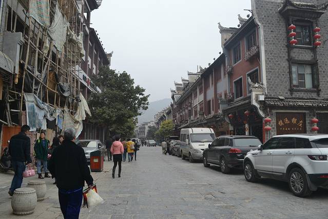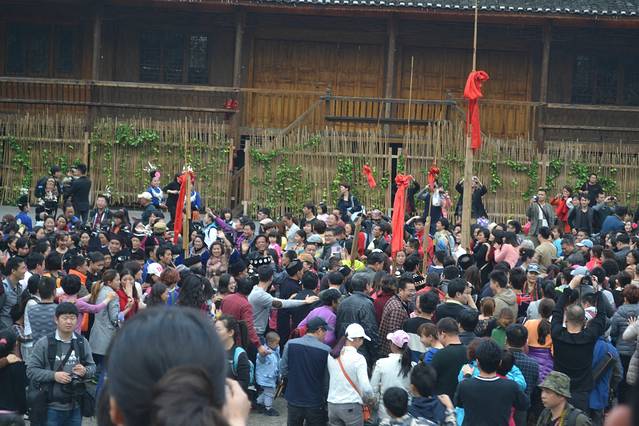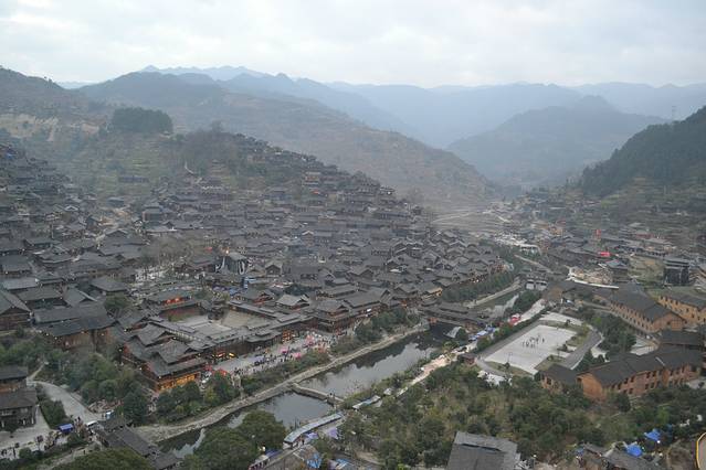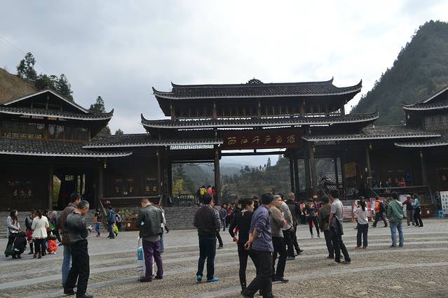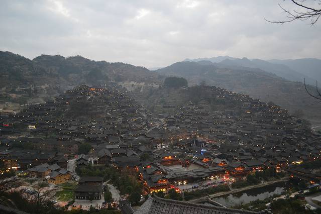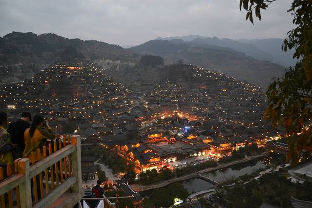 其实这个景区的门票跟环境正不成正比。寨子的环境很差,基本上家家户户都做成客栈,但是路灯,路面都还是像一般的农村一样,黑、暗、脏、乱。还有养猪的猪粪味道。观景台太小了,我们上到的时候才是下午五点半钟,但已经挤满游客,在等着夜幕降临,狠拍苗寨的夜景。后面我们也发现了,去这里,除了拍夜景,真是没什么看头了。所以想有好位置,最好的选择就是住山顶的房子。