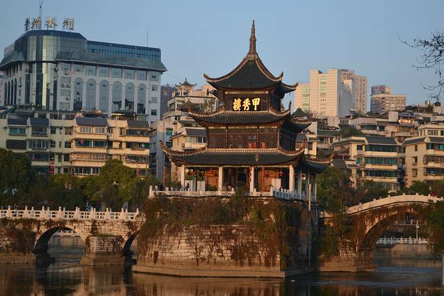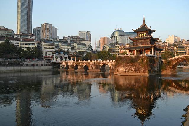 上午11点的飞机,晚点一小时,去贵阳市区的时候已经下午三点多了,找酒店住下后出来,太阳正准备要下山呢,所以就在这里转了一圈,不需要门票,没上楼,没啥特别的地方,到此一游,仅此而以。