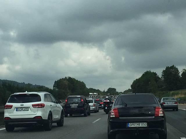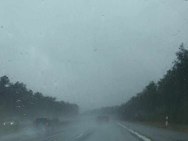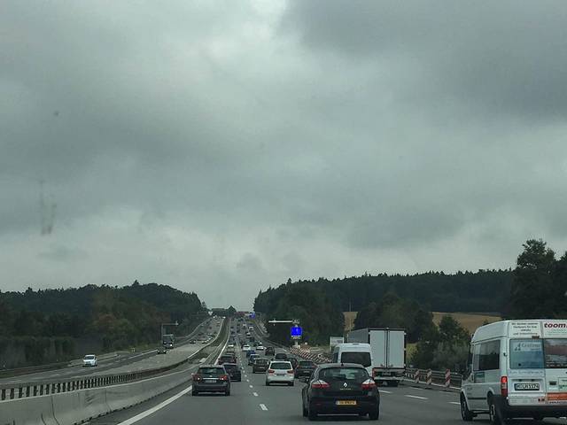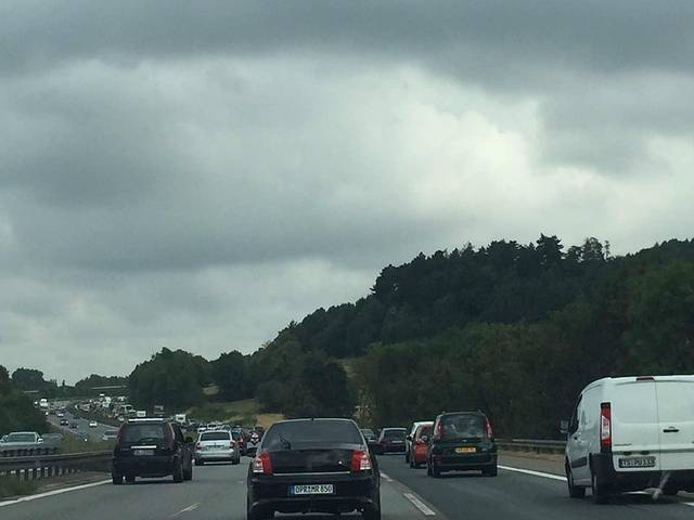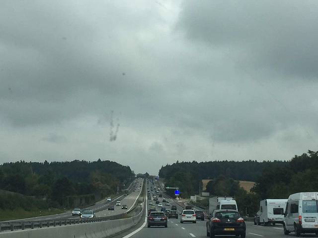 出发时居然下起了大雨,终于发现德国不如我们大中华的东西了,就是马路的质量还是我们的好啊,看看这情形,基本上看不清路。