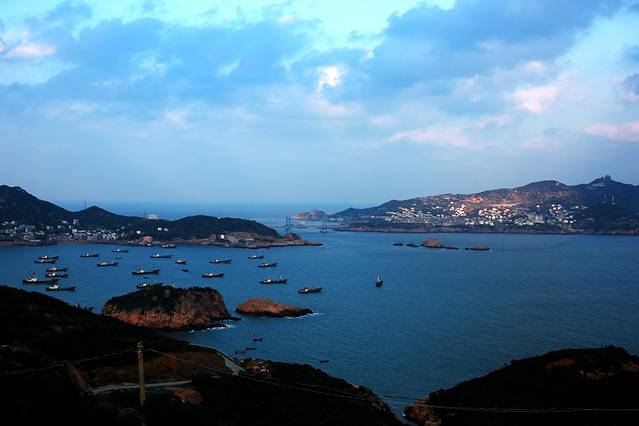 车上随手拍,连接嵊山岛和枸杞岛的三礁江大桥。