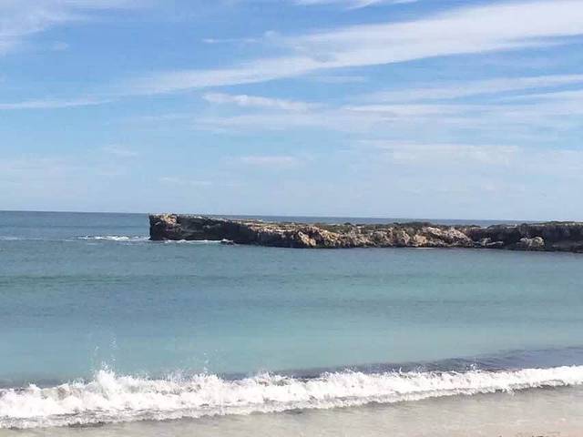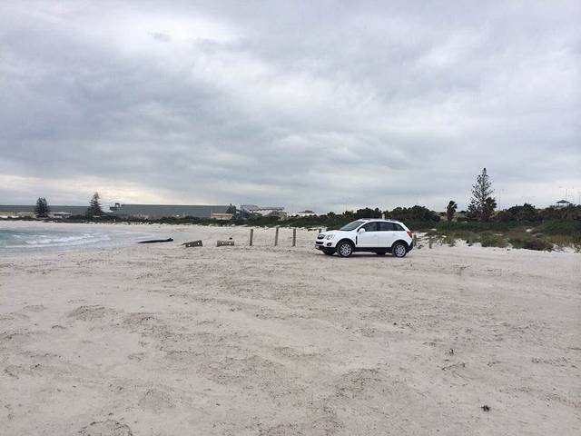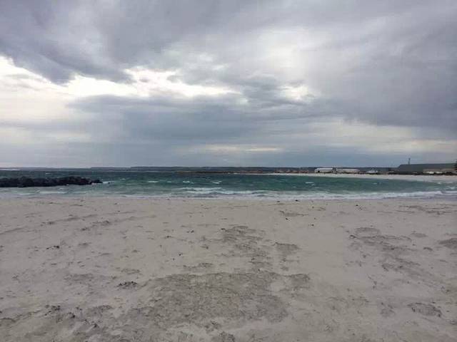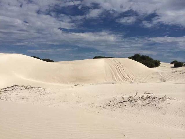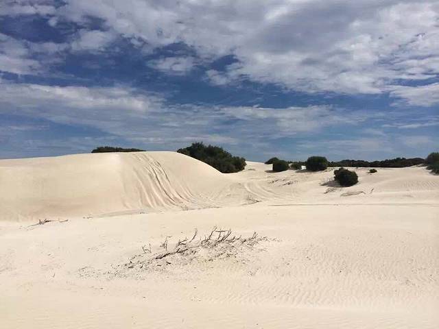 从这个海湾继续前行不久,居然发现路边又出现了一大片白沙滩!一大片!!看看这车辙的痕迹,应该是有越野车在玩的。很想也驾车去玩一下。不过看看这里前不着村后不着店,也不知道深浅,还是不敢贸然尝试。