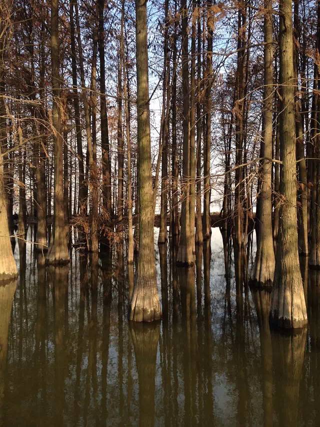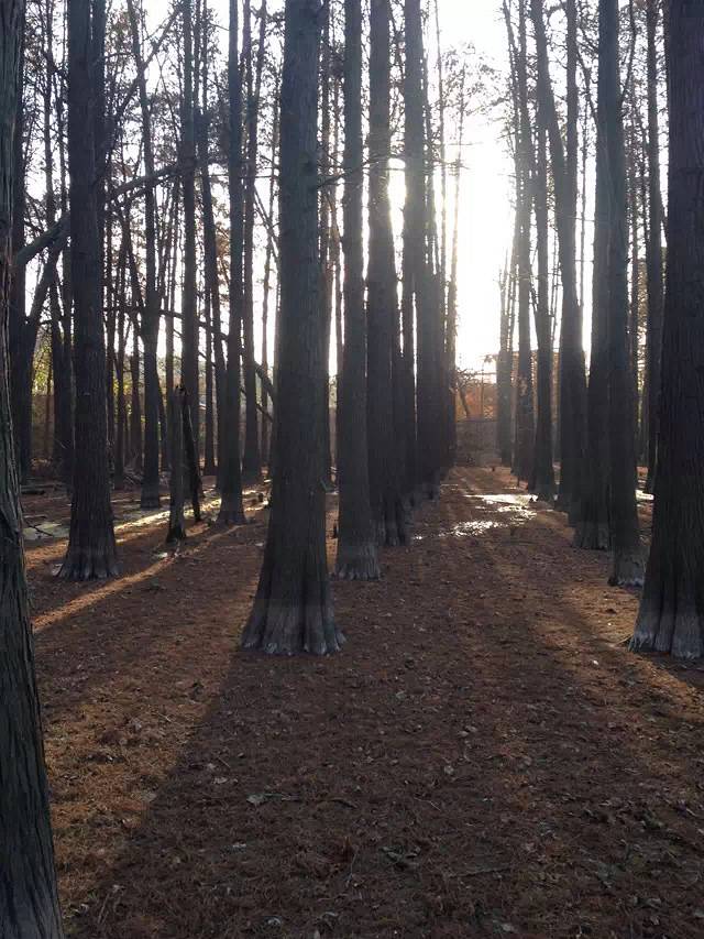 到达杨家湾之后,从楚平路直行,走到一个岔路口后,那里是一个楼盘(保利蓝海郡),这个时候得注意了,如果右转进去,那边是通往南湖公园的,南湖公园里没有娱乐设施,只是靠湖而建的散步的场所,但是这里却是看日落、拍摄日落的最佳地点(至少是我见过的),当我第一次来这里拍摄日落时就遇见一些摄影爱好者在此摄影,湖中有一个很小的芦苇丛,那芦苇丛是许多候鸟的落脚点,有一次确是亲眼目睹了成群的白鹭落于此。回到正题,那一次我是选择的直行,往前走有一个中国建设银行的大楼,到达大楼后左转是未修建的路,我在那里遇到过几个骑自行车的学生,如果没有猜错,他们应该是从中南民族大学那边骑过来的,这条路线我并未走过,所以不是很清楚,若是继续前行理论上讲是没有路了的,但是在湖上有拦水堤,路极窄甚至要从拦隔板上通过,那拦隔板只有一脚那么宽,可能是有的居民为了图方便在每一个拦板上加了一个竹制的长板,所以当时我是勉强过去了,这里我是不建议大家这样走的,毕竟比较危险,当时为了走这条捷径却花了近40分钟,简直得不偿失,但是在湖中心时却从正面看见了民大的双子建筑楼,走到湖对岸后就是南湖大道,这上面有特别多的骑行爱好者,走过大桥就可以直接到达狮子山底下,这里就是华中农业大学的区域了,我从山上较陡的斜坡上爬上去的,狮子山上植被特别多,记得后来有一次还特地过来帮同学捡过松果做多肉植物的肥料了的,在狮子山下走了一段路后我选择了下山去华农看看,很多人只知道武汉大学的樱花,其实春天还可以在这里赏油菜花和桃花。后来我从北门出来回到了湖边直接沿湖继续前行,在前面有一大片林区,这片树林很特别,所有的树都长在水中,在林间的水上建了一条石路,走到最尽头时部分树已经长在了陆地上,当时我感觉奇怪,为什么这片土地上寸草不生,于是毫不犹豫的踩了上去,结果这里竟是沼泽湿地,有些地方是不能踩的!但这里其实也是摄影的好地方。后面的路其实会很坑,这里就不介绍了,建议大家在水上树林玩过后就可以原路回到华农北门的大道上搭乘公交回去了。这路线适合摄影爱好者选择。