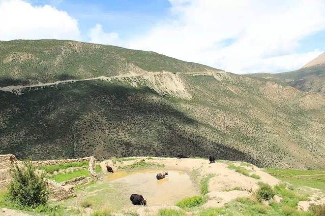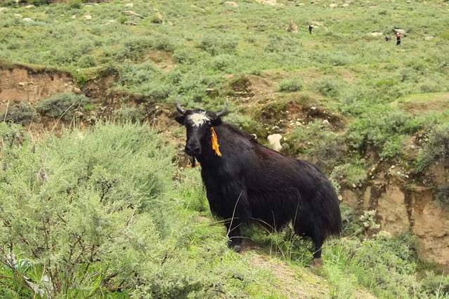 一个人走在山道上,突然从山坳里跑出一只牦牛,看见我就停了,我就举起相机对着它,它就这么定定地看我,那种感觉很奇妙。