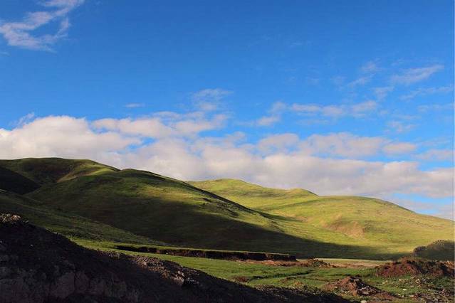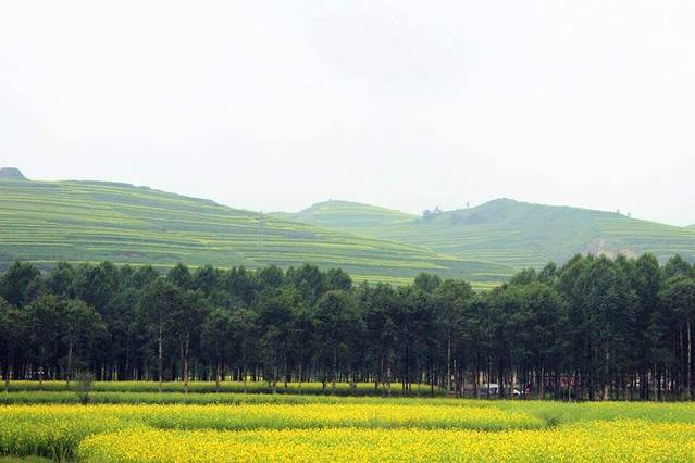 远处的山坡,像极了一块块颜色鲜亮的织毯。
