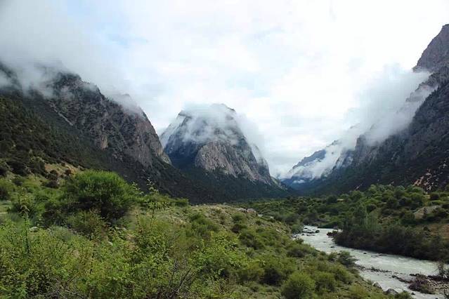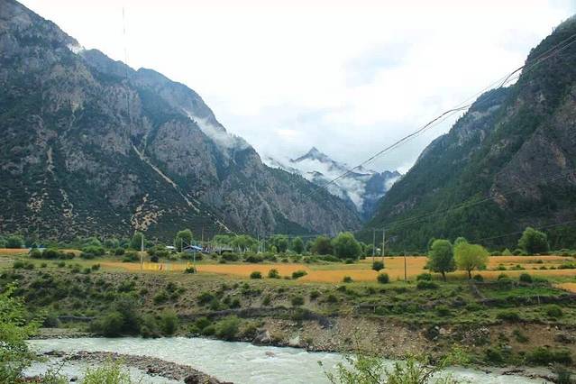 夜宿波密,半夜才到,已经找不到满意的酒店,连稍微靠谱的客栈都没了,只找到一家简陋的民宿。几间大屋子放上几张床,铺着很久没换洗的被子床单。男的一间,女的一间,没有浴室,没有热水,只有几只自来水龙头,几只公用的塑料盆,还有一个在院子里的简易公厕。没有洗漱,没有脱衣服,直接睡了。早起才发现,这里好美!
