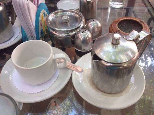 找不到位子啊…,这里的就餐模式是到柜台取个杯子,找到位子坐下,把零钱放在桌子上,然后拿茶壶的大姐就会来给你倒茶。倒满一杯,收一杯的钱,喝完接着帮你倒茶。