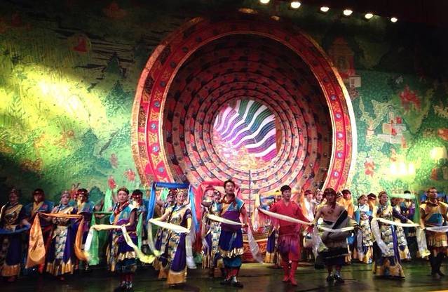 晚上8:30,来看一场级别很高的藏戏演出。这个也要提前一天预约才能进场的。可能是我人品太好了,在博物馆蹭人家的导游时,听说他们团有人要退票,嘿嘿…,便宜我啦!