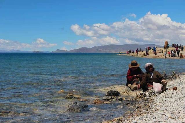 湖边休息的藏族奶奶,听不懂普通话,但是笑容很灿烂。