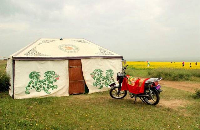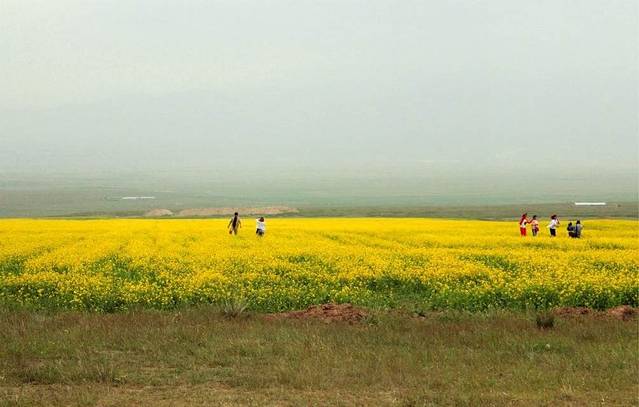 青海湖周边也有大片的油菜花,现在正好是盛花期。